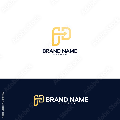 Obraz premium Modern P Arrow: Dynamic Direction Gold Vector Logo