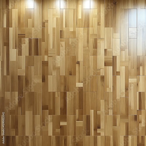 Fototapeta premium Modern parquet wood flooring texture, interior wall, spotlights, design