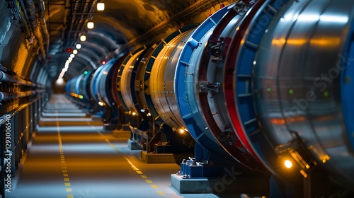© misster, Fototapeta premium Modern Particle Accelerator Machinery in High-Tech Research Facility Interior View