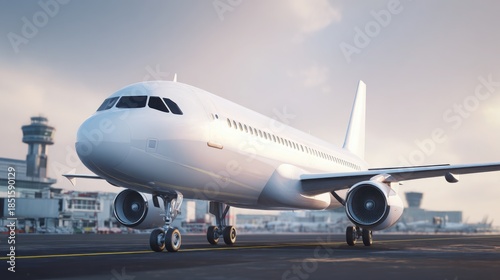 Fototapeta premium Modern Passenger Aircraft on Runway at Airport Terminal