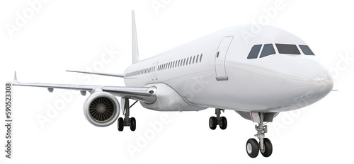 Obraz premium Modern passenger airplane, cut out. Based on Generative AI