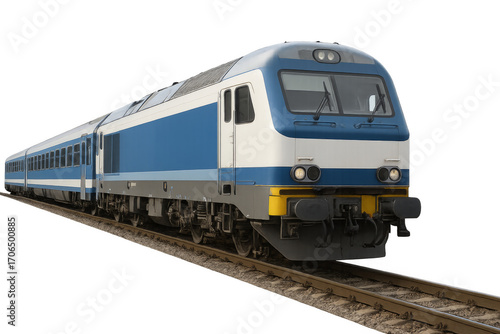 © ArtBox, Naklejka premium Modern passenger express train moving on railway track with transparent background