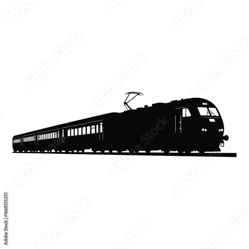 © LOKMAN, Obraz premium Modern passenger train silhouette moving on tracks representing transportation and travel silhouette