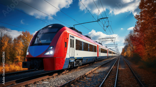 Naklejka premium Modern passenger transportation, locomotive with wagons for passengers