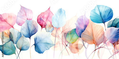 © Rassamee, Naklejka premium Modern pastel watercolor leaf painting, suitable for background design, white background.