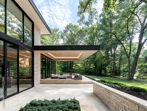 © Adobe, Fototapeta premium Modern Patio for Wooded Backyard Oasis.