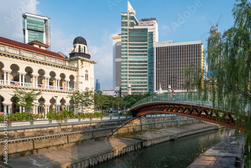 Obraz premium Modern pedestrian bridge overcrossing the Gombak river at Ministry of Tourism and Culture in Kuala Lumpur, the capital of Malaysia