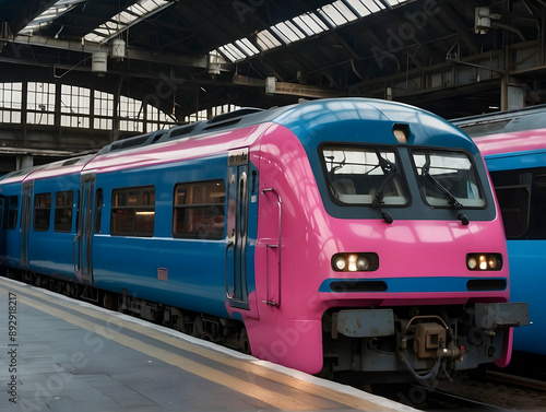 © JohnDesignHub, Fototapeta premium Modern pink train at the station platform