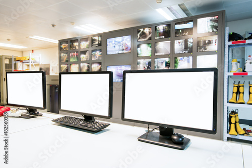 Naklejka premium Modern plant control room and computer monitors