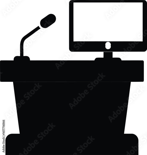 © Muhammad Subhan , Obraz premium Modern podium with microphone and computer screen for presentations and lectures