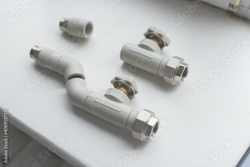 Naklejka premium Modern polypropylene water tap witn and separately polypropylene pipe...