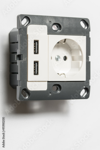 Obraz premium Modern power socket, with two usb charger port, without decorati