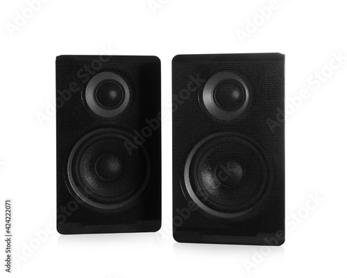 Fototapeta premium Modern powerful audio speakers on white background