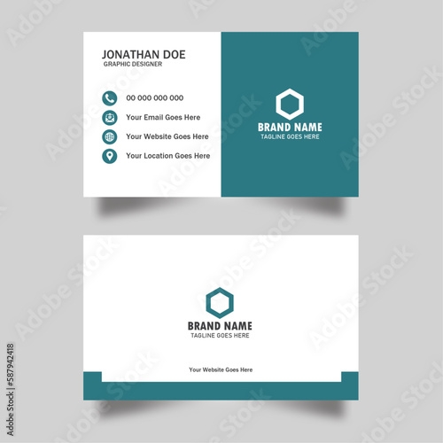 © Tahsin, Obraz premium Modern presentation card. double sided business card design template. horizontal simple clean template vector design, layout in rectangle size. Vector illustration design.