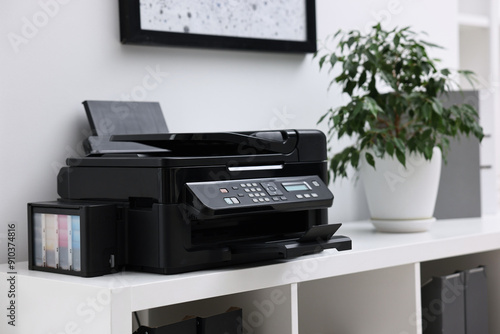 © New Africa, Fototapeta premium Modern printer on white table in office