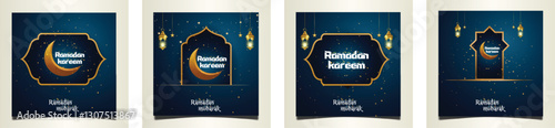 © Rahimatul, Naklejka premium "Modern Ramadan Kareem and Mubarak Designs: Crescent Moons, Golden Lanterns, Starry Background, and Elegant Minimalist Style"