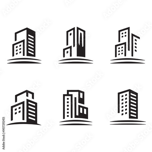 Obraz premium Modern Real Estate Building Icons Set, Minimalist Urban Architecture Logos