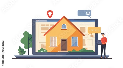 © Julia, Fototapeta premium Modern Real Estate Navigation: Yellow House and Mapping Technology