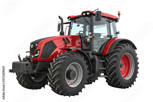Obraz premium Modern Red Agricultural Tractor Isolated on White