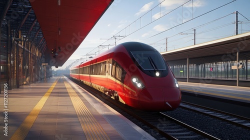 © Johannes, Fototapeta premium modern red color bullet train railway station scenic journey countryside beautiful platform