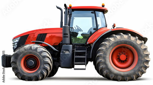 © Siasart, Obraz premium Modern Red Tractor Isolated on White Background Shows Power and Utility in Agriculture
