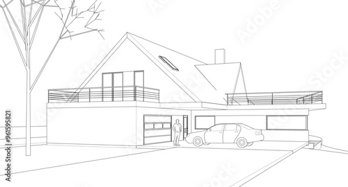 © Svjatoslav, Obraz premium modern residential architecture 3d illustration