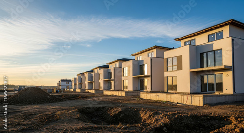 Obraz premium Modern Residential Houses Under Construction at Sunset.
