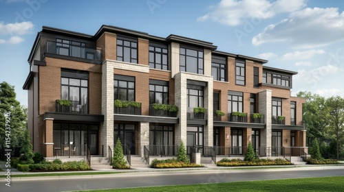 Fototapeta premium Modern Residential Townhouse Complex with Lush Landscaping