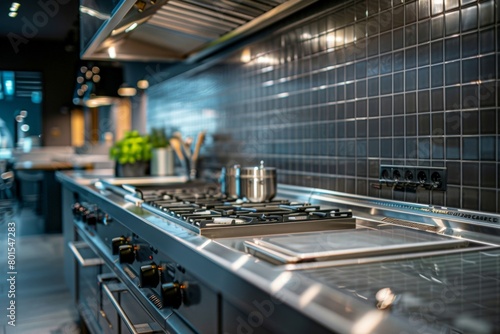 © bramthestocker, Fototapeta premium Modern restaurant kitchen interior with washbasin and stove