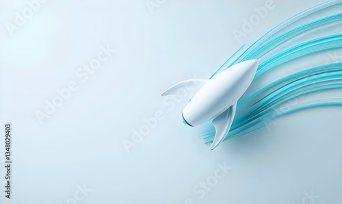 Obraz premium Modern Rocket with Blue Streamlines on Minimalist Background
