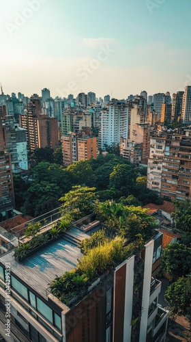 Fototapeta premium Modern Rooftop Garden in Vibrant Cityscape