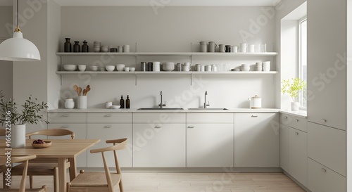 Fototapeta premium Modern Scandinavian kitchen interior with clean lines and a bright airy atmosphere