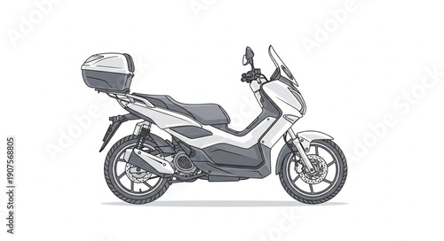 © BERKAH, Fototapeta premium Modern Scooter with Storage Box on White Background.