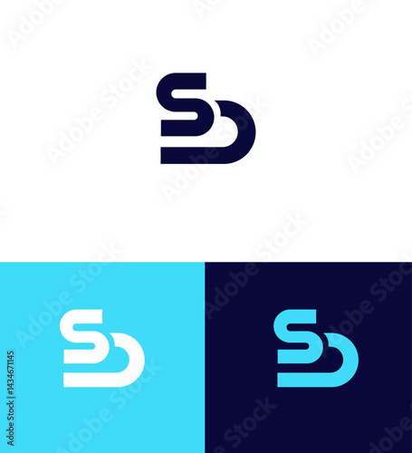 Fototapeta premium Modern SD Monogram Logo Design Blue, Cyan, White Variations