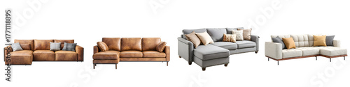 © Naruedetch, Fototapeta premium Modern Sectional Sofas Collection: Isolated Furniture on White