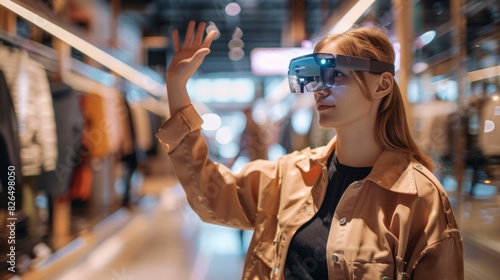 Obraz premium Modern Shopping: AR Glasses User Trying on Clothes Virtually in High-End Store
