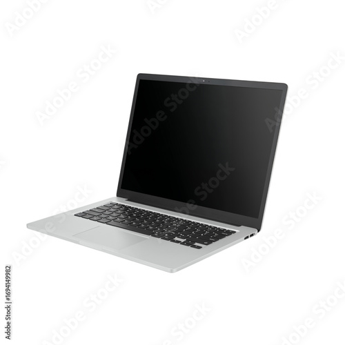 Fototapeta premium Modern silver laptop open and ready for use isolated on a neutral background transparent background
