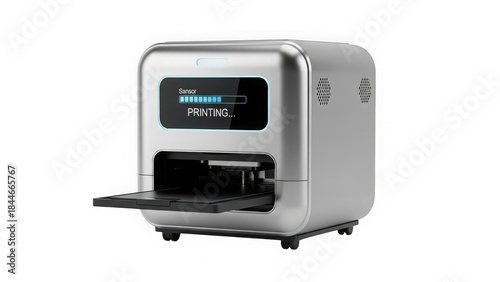 © Hafs, Obraz premium Modern Silver Mini Printer Device with Digital Display.