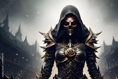 © Vieriu, Fototapeta premium Modern skull screams epic art ,horror canvas art collection for decoration and interior. black and gold. wall art. canvas art, wallpaper . Generative ai