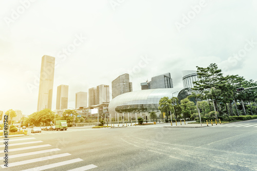 © zhu difeng, Fototapeta premium Modern skyline and urban street