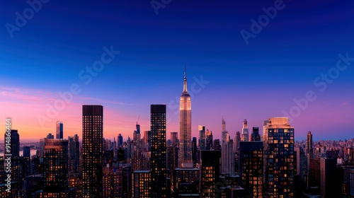 © GenVision, Fototapeta premium Modern skyline, urban landscape, panoramic view Background