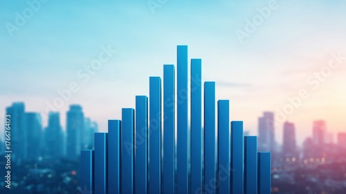 © Nitchalee N., Fototapeta premium Modern skyline with geometric glass structures at sunset.