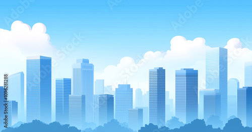 © song, Fototapeta premium Modern Skyline with High-Rise Office Buildings under Blue Sky