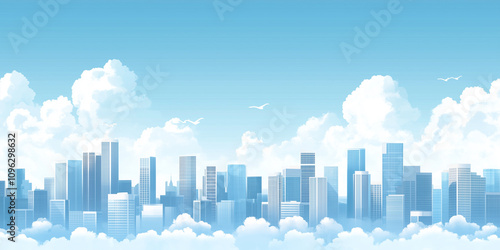 © song, Fototapeta premium Modern Skyline with High-Rise Office Buildings under Blue Sky