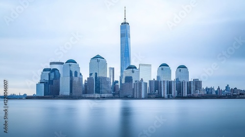 Fototapeta premium Modern skyline with sharp-edged skyscrapers standing tall against a bright,...