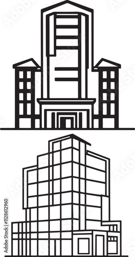 © Bhismodeb, Obraz premium Modern skyscraper Illustration of building vector icon set