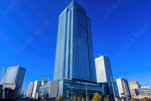 Fototapeta premium Modern skyscraper in urban Japanese city center
