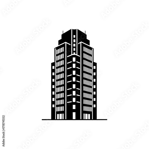 © Muzaki, Obraz premium Modern skyscraper stands tall against a clear sky, showcasing architectural design and urban development with a sense of strength and sophistication.