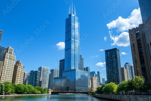 © song, Fototapeta premium Modern Skyscrapers Against a Blue Sky