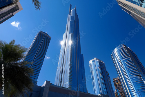 © song, Fototapeta premium Modern Skyscrapers Against a Blue Sky